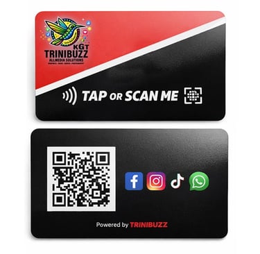 Custom NFC Tap Cards – Branded smart digital business cards that let clients tap or scan to instantly access your contact details, links, and services.